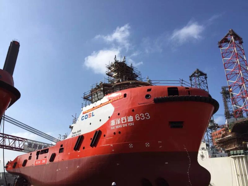 由南通豪通船務(wù)(上海事業(yè)部)在上海振華重工承接的中海油服三艘6500HP油田守護(hù)船,其中第二艘船“海洋石油633”于11月16日10:18分,順利下水。