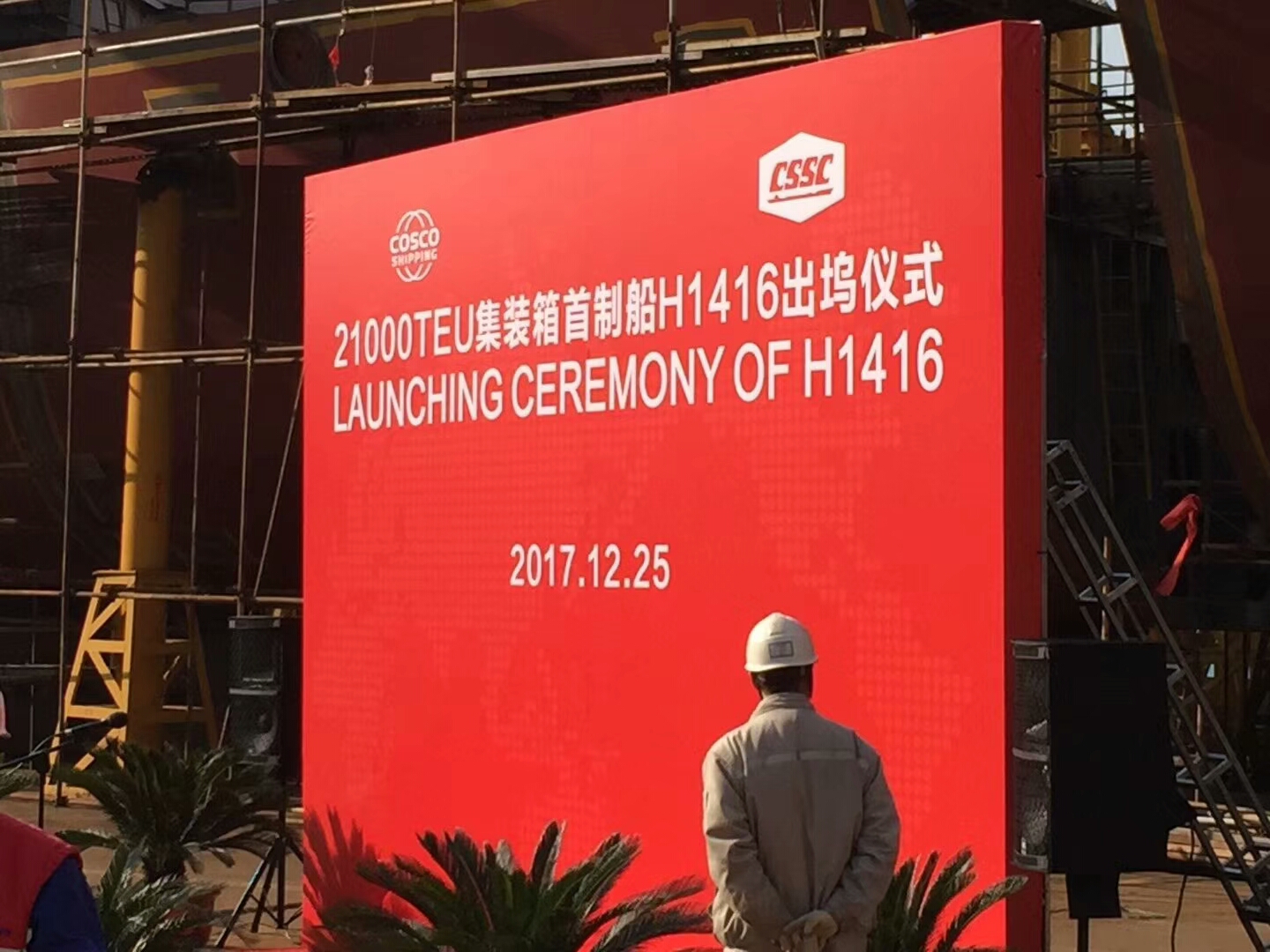 祝賀南通豪通船務(wù)(江南事業(yè)部)在上海長興江南重工參與建造的目前世界最大的21000TEU集裝箱(H1416),于201712月25日順利下水!