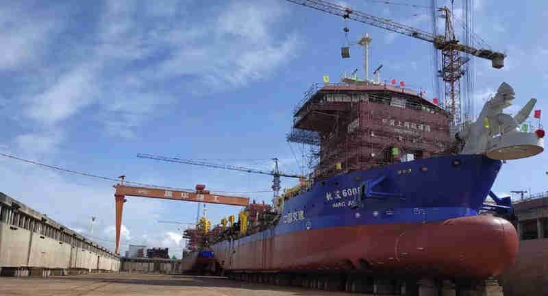 祝賀南通豪通公司(振華事業(yè)部)在上海振華重工(啟東公司)承接的整裝舾裝,搭載工程的6500m3耙吸式挖泥船,于8月18日上午11點(diǎn)18分順利下水!